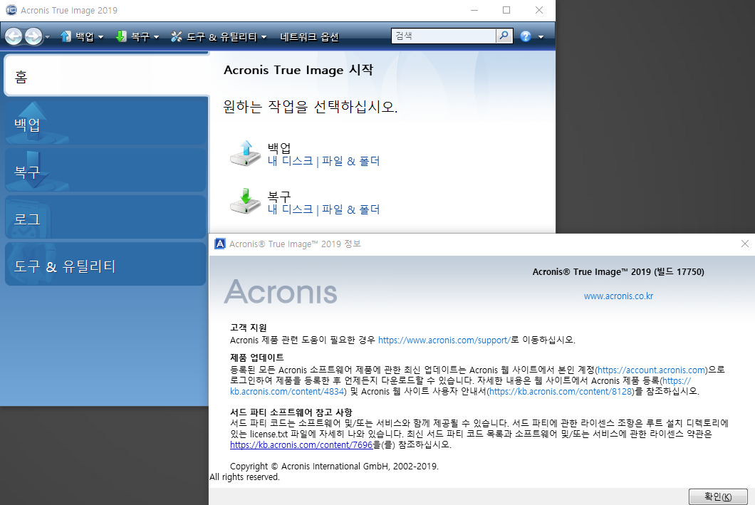 2017년 3월 27일 빌드 17750 Acronis True Image 2019 (Windows 용)