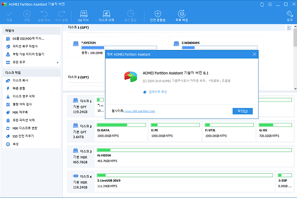 | AOMEI Partition Assistant Technician Edition 8.1 Potable 한글 (1) | 2019.03.07 |