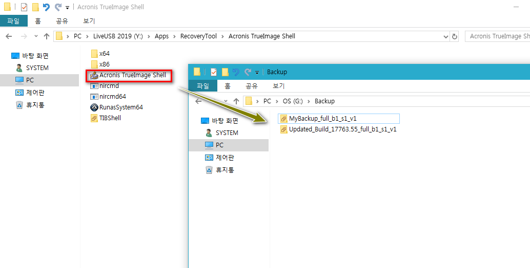 PE에 Acronis TrueImage 확장자인 .tip파일을 Mount 할 수 있도록 TrueImage Shell을 심어보았습니다.