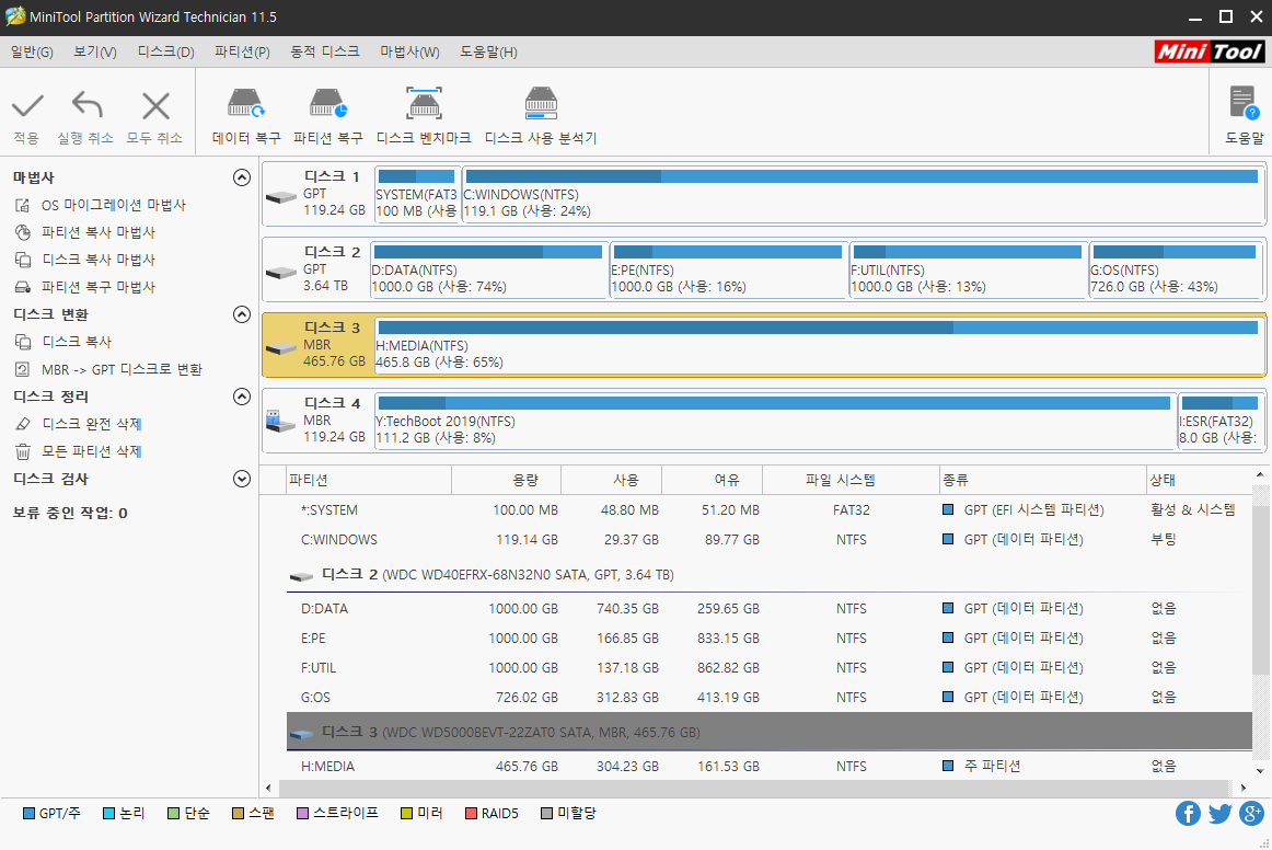 MiniTool Partition Wizard Technician 11.5 한글