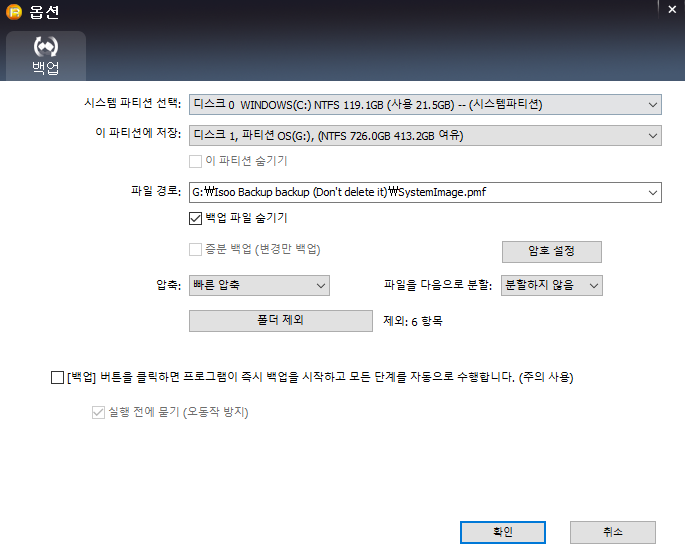 시스템 파티션, 시스템 예약 파티션 및 EFI 파티션을 포함하여 시스템 드라이브를 완전히 백업합니다.