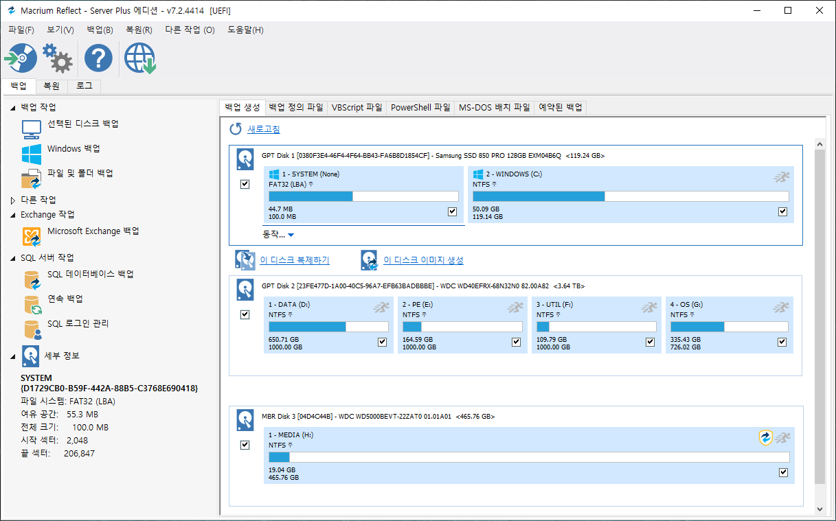Macrium Reflect는 이미지 기반 백업 및 재해 복구 솔루션으로, 속도, 단순성 및 성능면에서 한 단계 더 발전하여 조직이 번거로운 예산 부담없이 비즈니스 크리티컬 데이터 및 시스템을 보호하는데 중점을 둡니다. Macrium Reflect는 하드 디스크 또는 디스크 파티션의 정확하고 안정적인 이미지를 만듭니다. 시스템이 부분적으로 또는 완전히 손실된 경우 이 이미지를 사용하여 전체 디스크, 하나 이상의 파티션 또는 개별 파일 및 폴더를 복원할 수 있습니다.