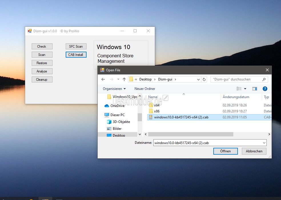 DISM-Gui는 Windows 10용 x64 및 x86 버전 패키지로 제공됩니다.