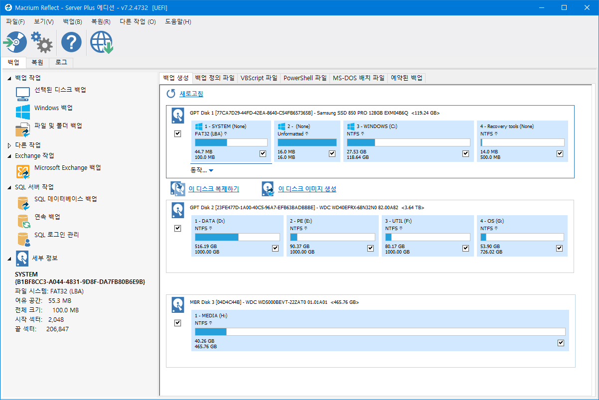 Macrium Reflect는 이미지 기반 백업 및 재해 복구 설루션으로, 속도, 단순성 및 성능면에서 한 단계 더 발전하여 조직이 번거로운 예산 부담 없이 비즈니스 크리티컬 데이터 및 시스템을 보호하는 데 중점을 둡니다. Macrium Reflect는 하드 디스크 또는 디스크 파티션의 정확하고 안정적인 이미지를 만듭니다. 시스템이 부분적으로 또는 완전히 손실된 경우가 이미지를 사용하여 전체 디스크, 하나 이상의 파티션 또는 개별 파일 및 폴더를 복원할 수 있습니다.
