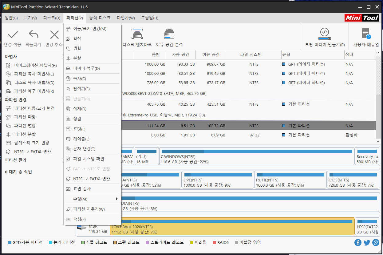 하드 디스크와 파티션을 완전히 제어할 수 있는 많은 강력한 기능이 제공됩니다.