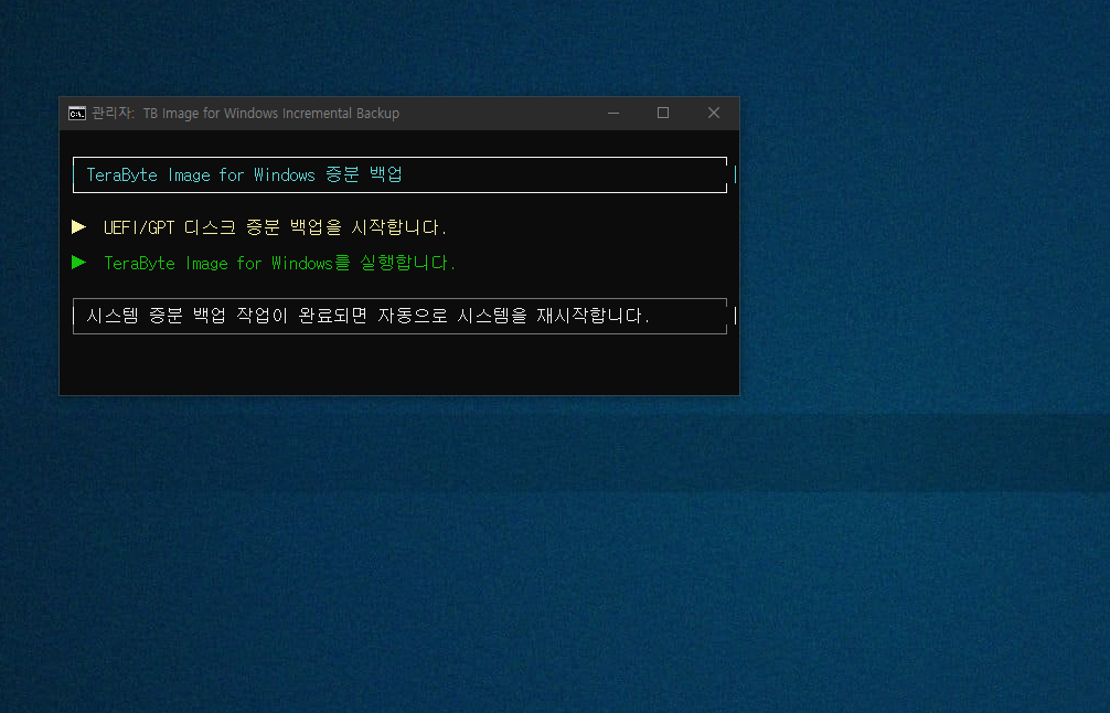 백업 작업이 끝나면 Windows 시스템으로 되 돌아오게 됩니다.