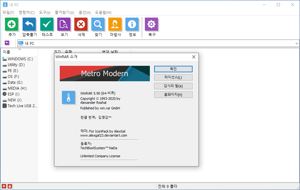 - WinRar 5.90 한글 Metro Modern Theme heme 적용,