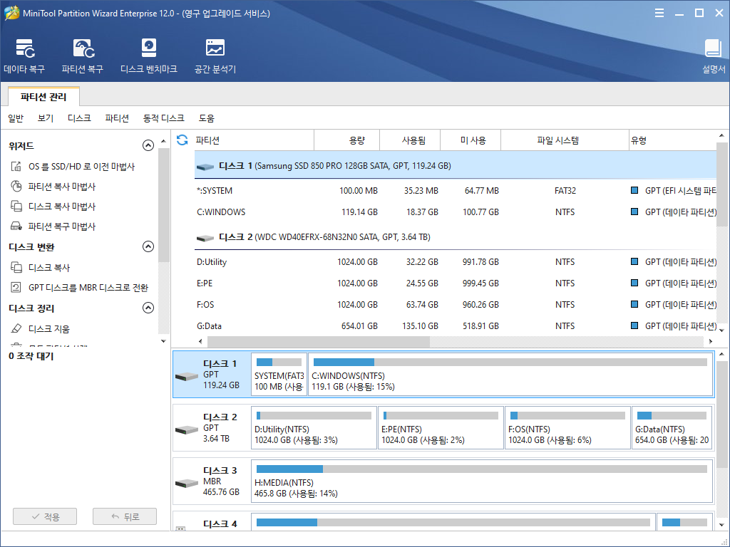 MiniTool Partition Wizard는 디스크 사용을 최적화하고 데이터를 보호하도록 설계된 풍부한 기능의 파티션 마법사입니다. 하드 디스크와 파티션을 완전히 제어할 수 있는 많은 강력한 기능이 제공됩니다. 사용하기 쉬운 인터페이스와 간단한 지침을 통해 파티션 크기 조정, 디스크 복사, 손실된 파티션 검색 및 OS를 SSD로 쉽고 안전하게 마이그레이션 할 수 있습니다.