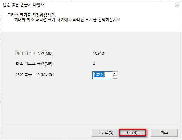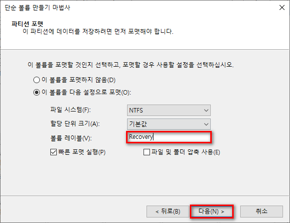 복구 파티션을 생성합니다.