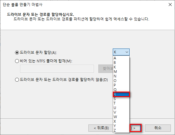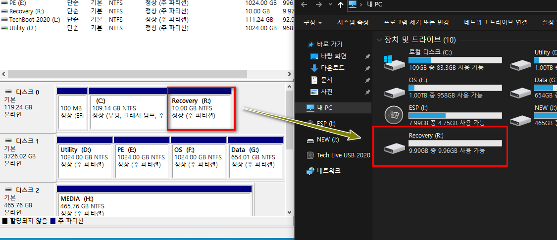 복구 파티션(R:)이 잘 만들어졌습니다.