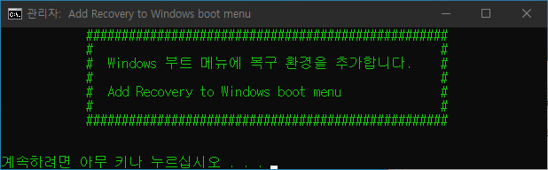 부팅 메뉴에 복구 파티션 추가