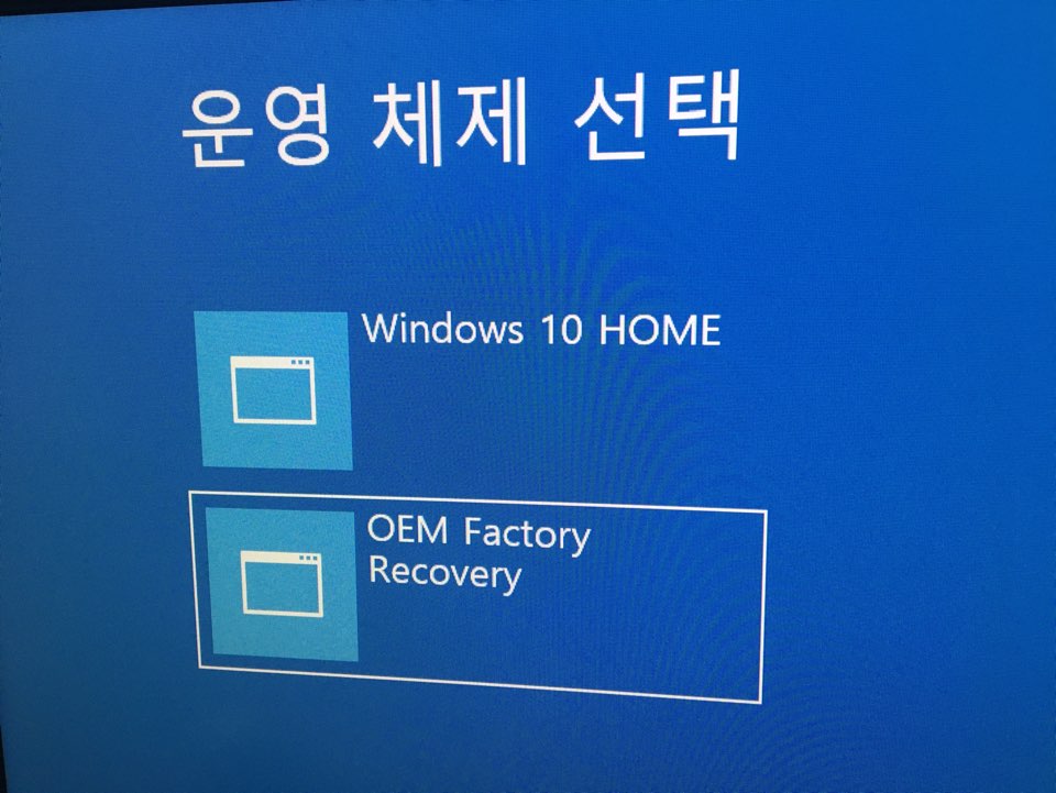"OEM Factory Recovery" 선택 하시면 Windows 설치화면을 보실수 있습니다.