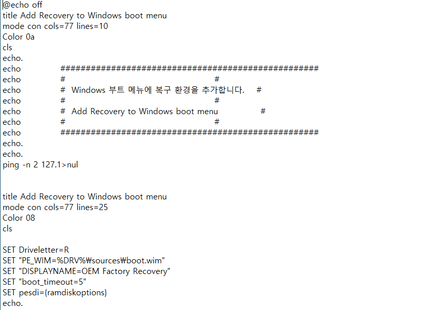 3-1 첨부된 Recovery Partition.cmd를 메모장으로 열어서 본인 상황에 맞게 수정합니다.