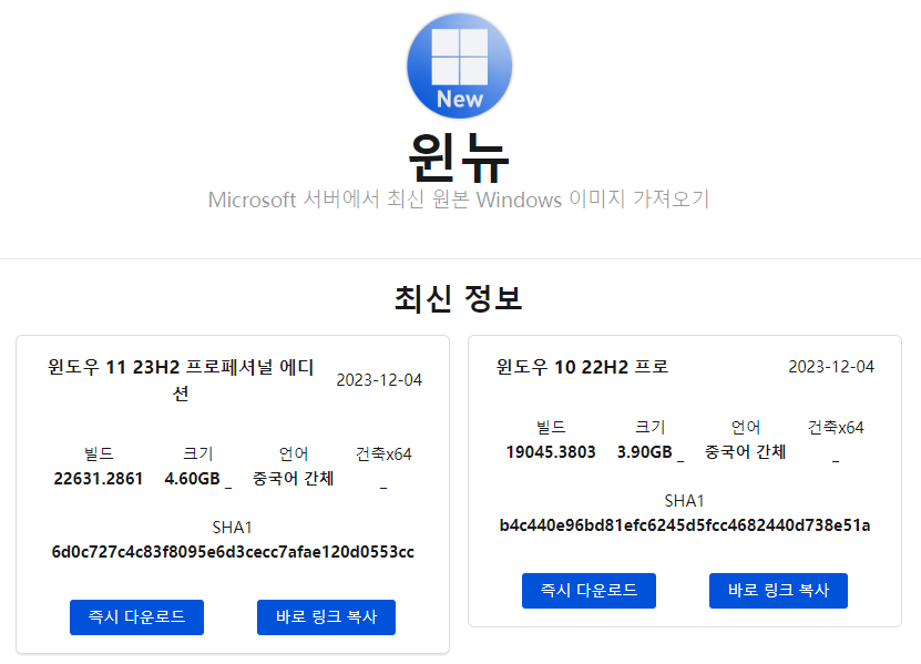 Microsoft 서버에서 Windows 최신 이미지 다운로드