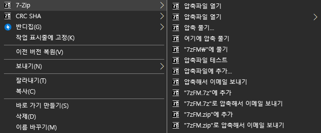 7-zip+.exe 실행하시고 바탕화면 우클릭 `새로고침` 하시면 파일연결 완료됩니다.